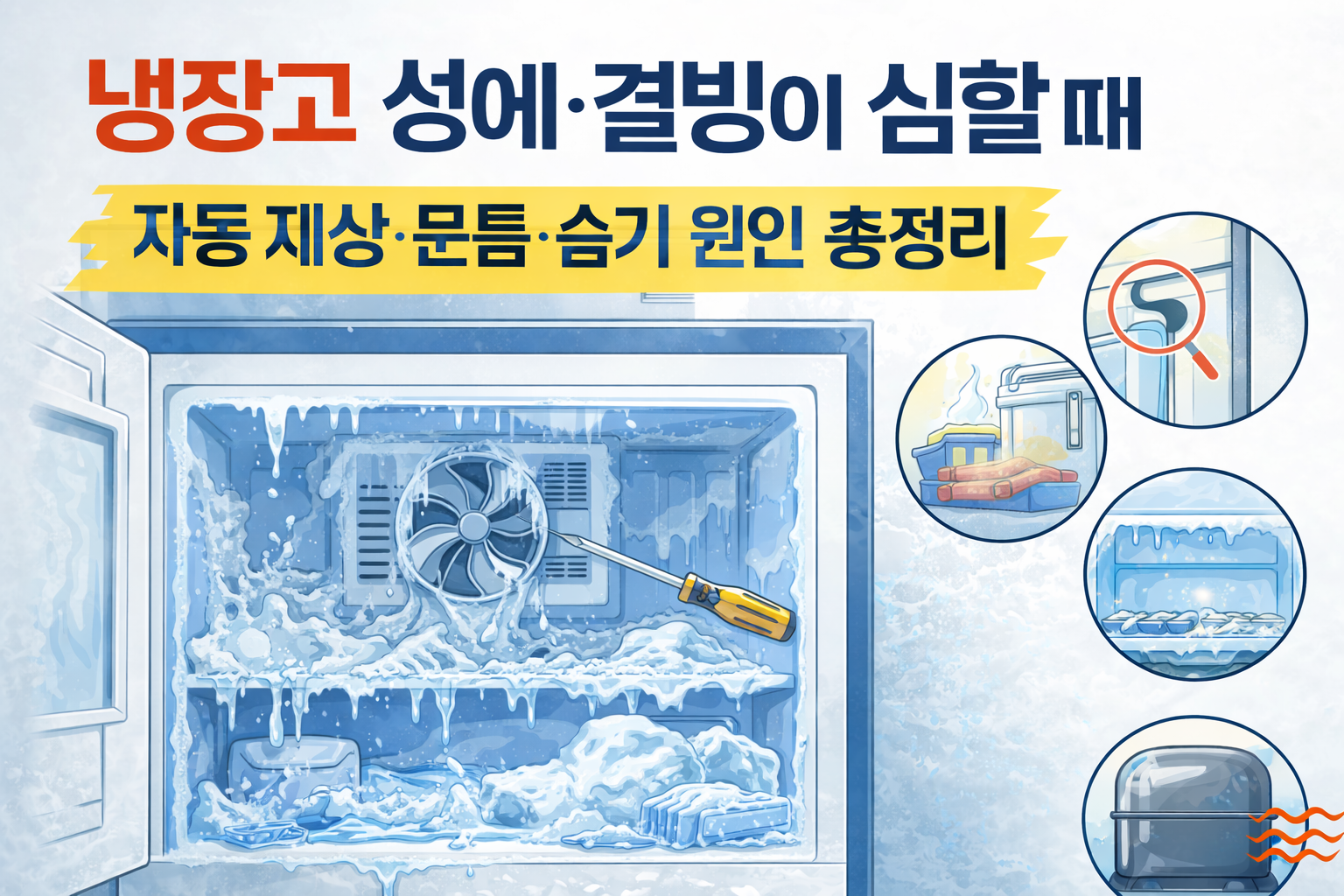 냉장고 성에·결빙이 심할 때 — 자동 제상(Defrost)·문틈·습기 원인 8가지 총정리문제 해결/가전 문제 해결 2026. 1. 12. 20:58