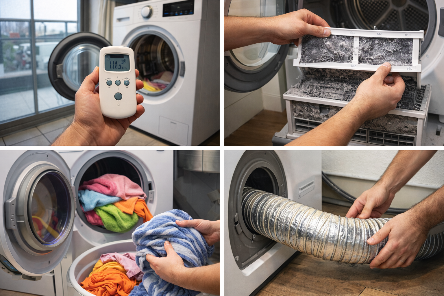 건조기 설치 공간의 체감 온도가 지나치게 낮은지 확인합니다. 겨울철에는 실내 난방이 되는 공간에서 사용하는 것이 상대적으로 안정적입니다. - 보풀 필터 및 열교환기 점검