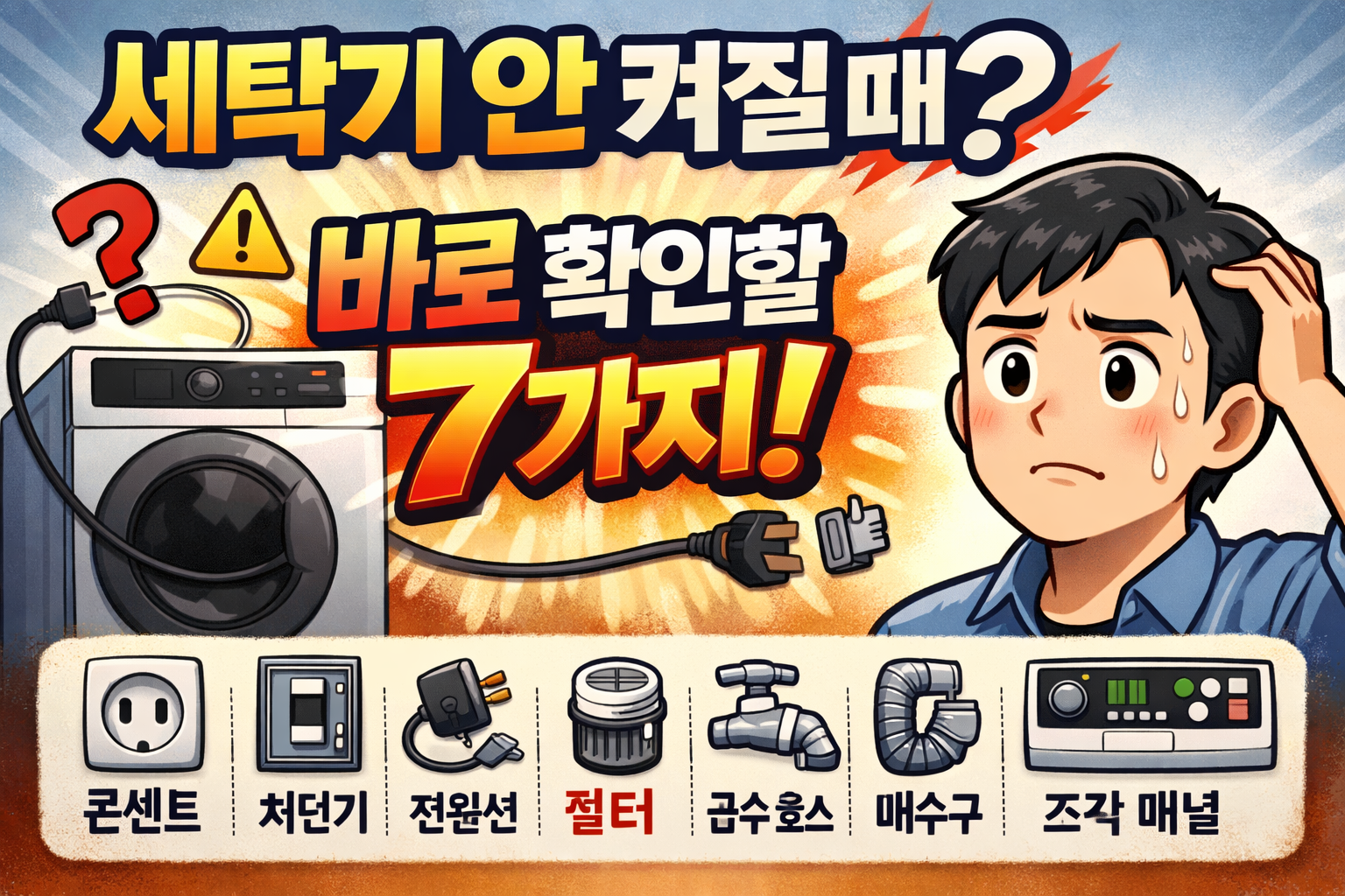 세탁기 전원이 갑자기 안 켜질 때 바로 확인해야 할 7가지문제 해결/가전 문제 해결 2026. 1. 8. 13:50